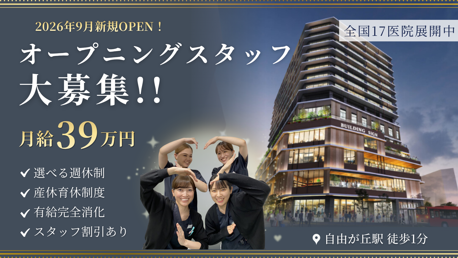 【2026年9月開院】自由が丘駅徒歩1分/オープニングスタッフ大募集✨月給39万円~!選べる週休♪