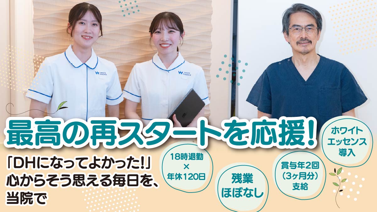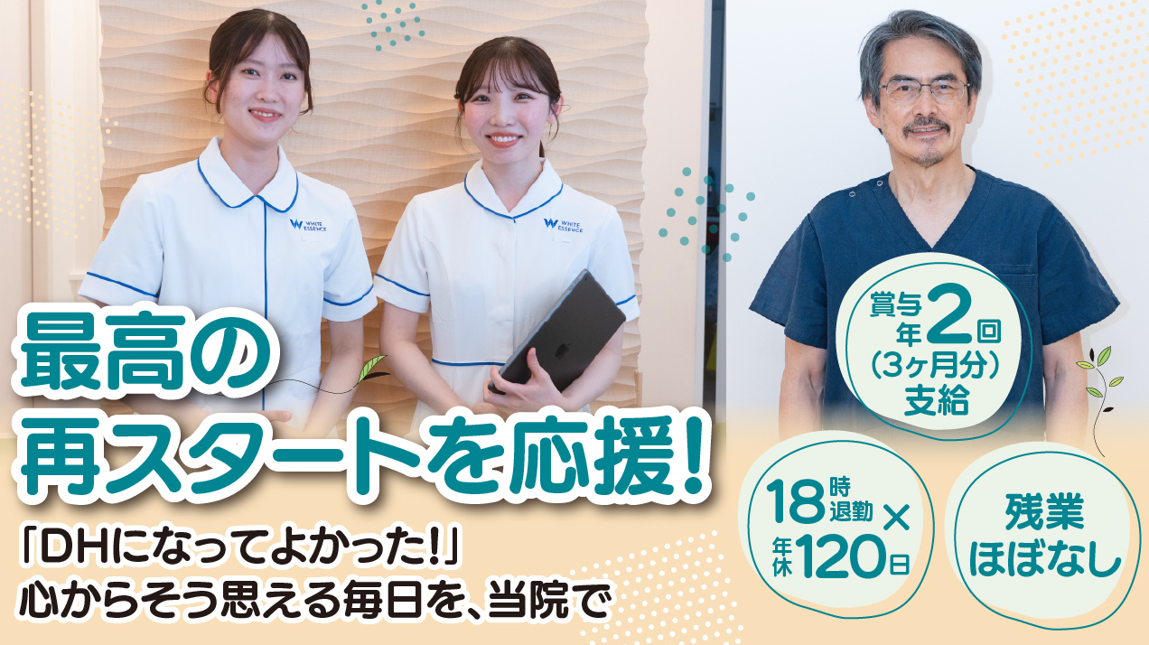 当院は、あなたが「歯科衛生士になってよかった」と心から思える最後の職場になるよう、「一生モノの技術」と「家族のような温かさ」でお迎えします♪