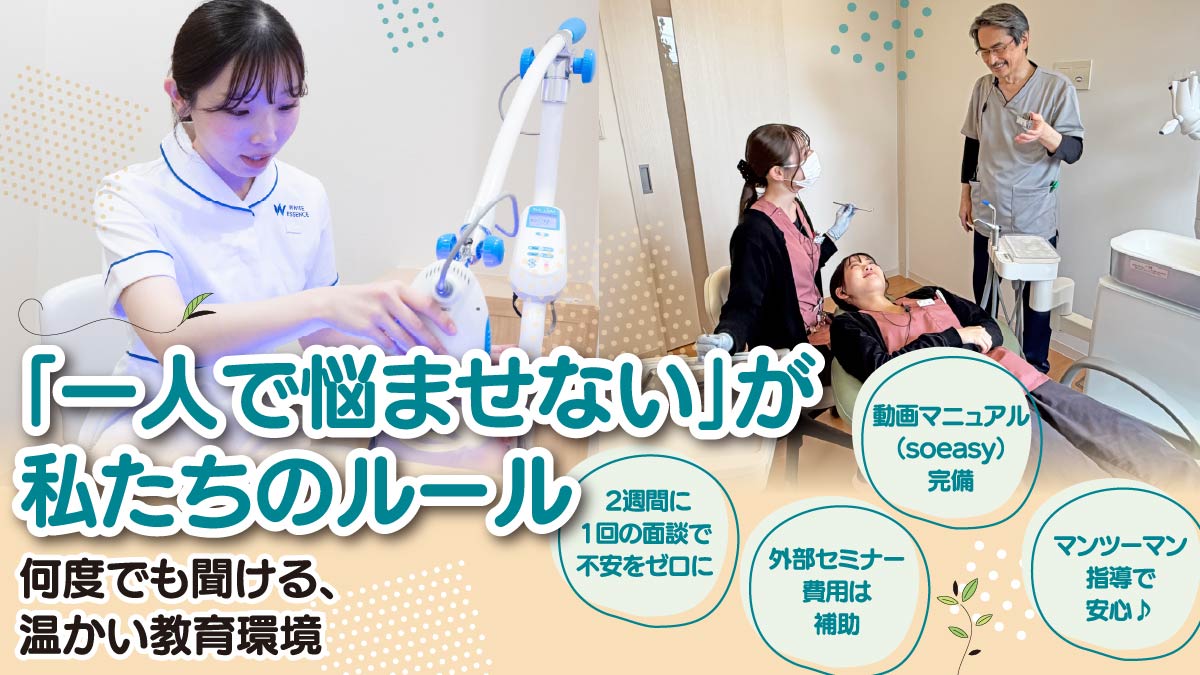当院では、新人の方が一番不安に感じる「放置」や「人間関係のギャップ」をなくす仕組みを整えています。