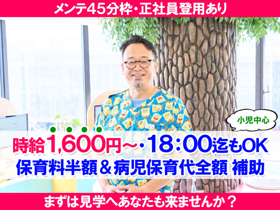 【✅時給1,600円~】“保育料”半額&“病児保育代”全額 補助|18:00迄もOK!