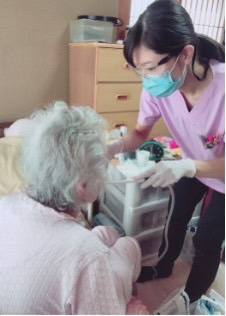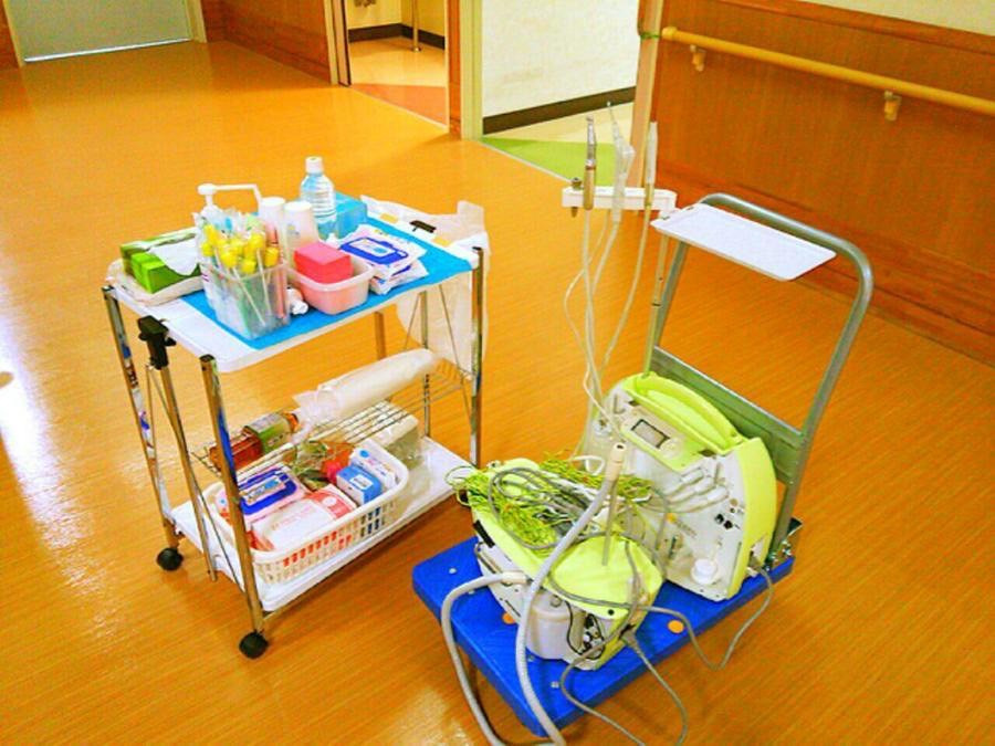・訪問診療にも注力。ポータブルユニットやパスルオキシメータ―など、院内と同じクオリティの診療ができる機材を使用しています。