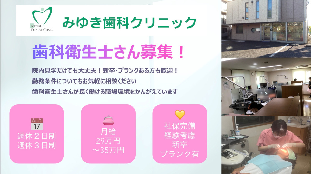 【見学だけでもOK✨】新卒・未経験・ブランク歓迎|週休3日制あり 勤務条件について気軽に相談ください◎地域密着の歯科クリニックで安心スタート🌿