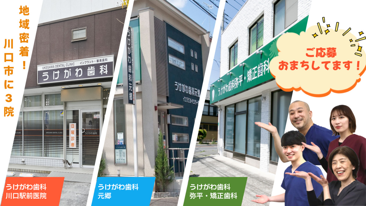 川口地域で3軒の歯科医院を運営するうけがわ歯科グループのひとつです。