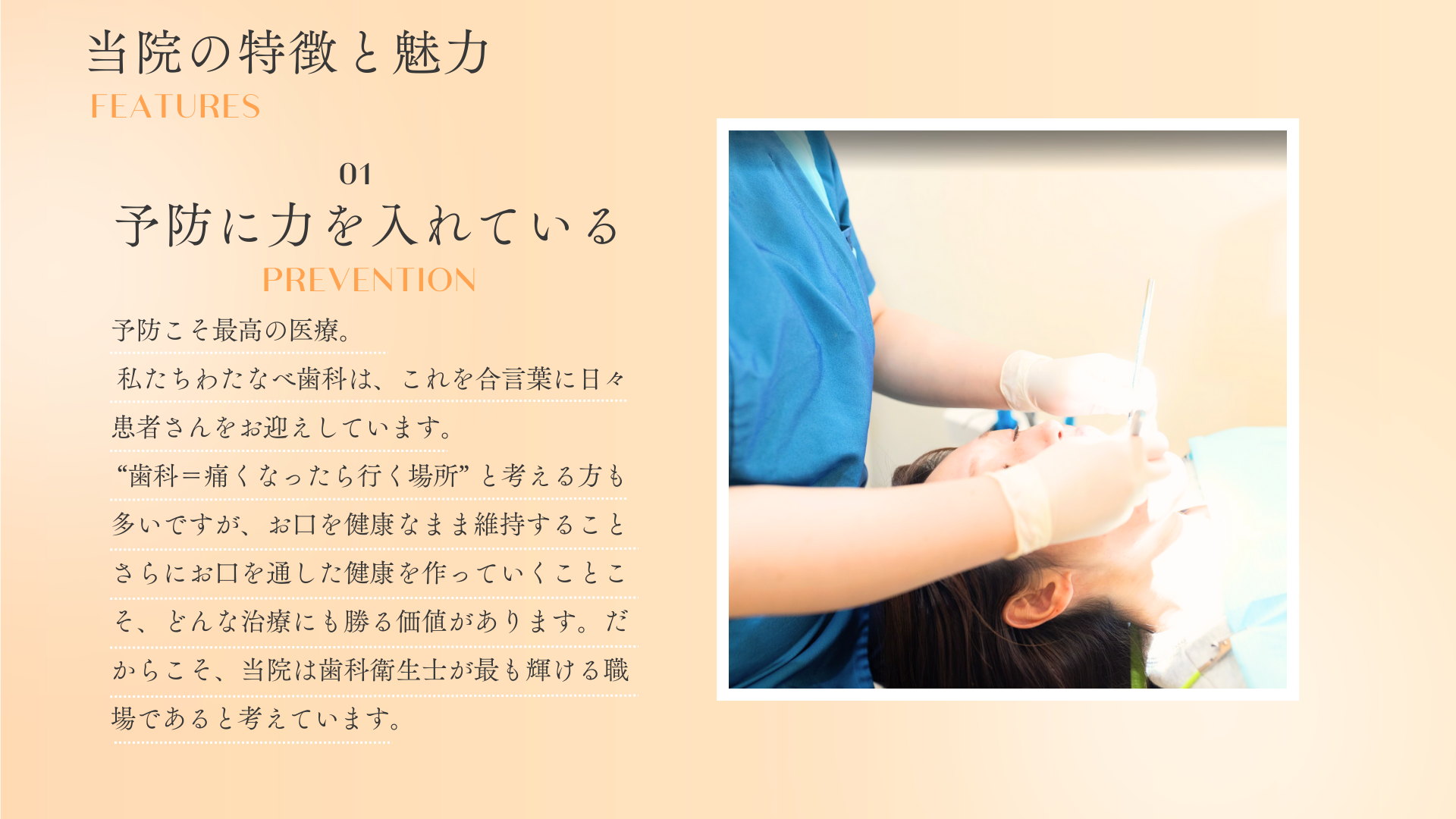 ・予防が中心!むし歯ができないように患者さんのお口の健康をサポート。