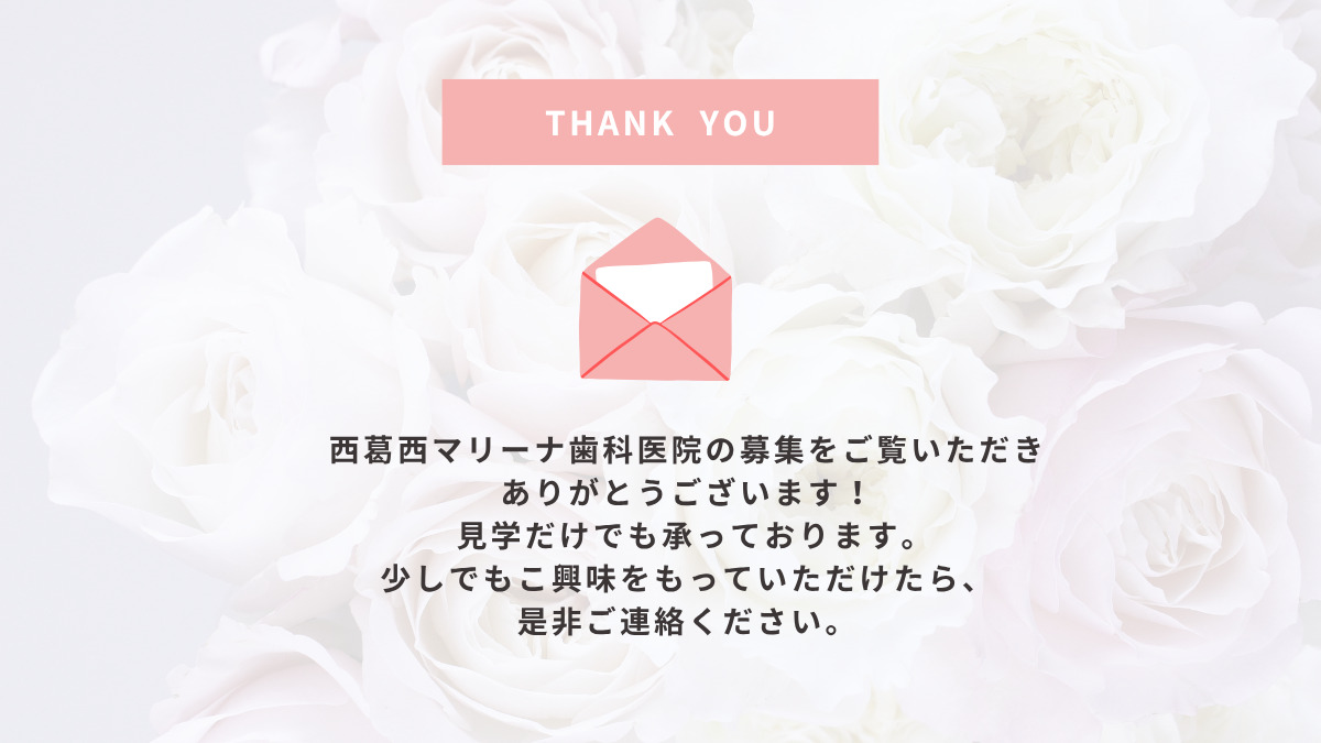 衛生士として新しい事を学びたい方、意欲のある方は特に楽しく働けると思います!