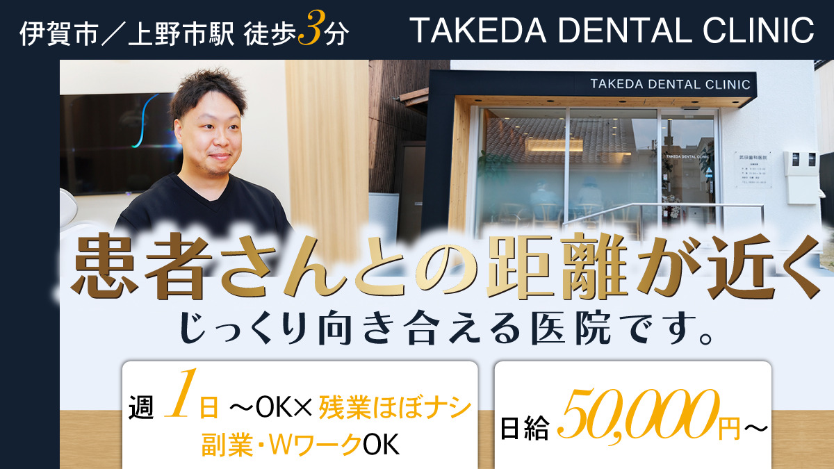 <伊賀市・上野市駅徒歩3分>日給5万円以上★週1日~OK★新築ピカピカの医院◎患者さんとの距離が近くて、じっくり向き合える医院です♪